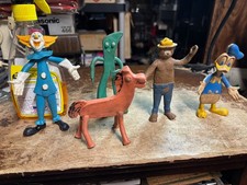 Vintage Lakeside Rubber bendy Toys Lot Smokey Gumby Bozo Donald Duck Pokey 1960s