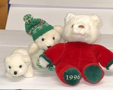 Vintage Sitting Teddy Bear Lot With Pajamas Christmas Lot Of 3