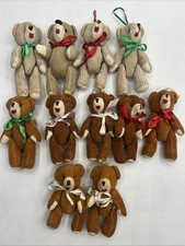 Philip Stahl Teddy Bear Ornaments Lot of 11 Jointed Corduroy Brown Tan Vintage