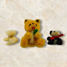 Lot of 3 Vintage Dollhouse Miniature Toy Furry Teddy Bears 1980's 1:12 Scale