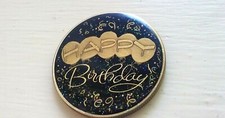 Black with Sparkles Happy Birthday coin Balloons Antique bronze Over the Hill