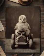 Vintage Victorian Chick Toy Car Card Gothic Dark Humor Antique Style Photo