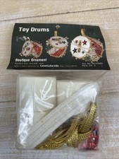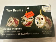 Vintage LeeWards Toy Drums Pkg. of 3 Sequin Beaded Christmas Ornament Kit Japan