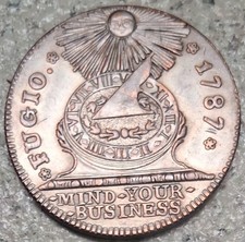 1787 Fugio Cent - Colonial Copper COPY Coin w/ Beautiful Antique Petina - 28mm