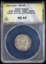 2000 Token Ron Landis Hobo Nickel O/S Jefferson 5c ANACS MS69 Jesus
