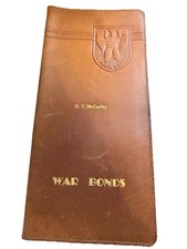Antique WWII Era Brown Leather War Bonds Wallet 9”x 4.25 ” Near Mint Condition