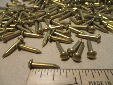 125 - ORIG. VINTAGE, 3/4" X 1/16" - SOLID BRASS FINISH NAILS MADE IN U.S.A.