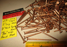 25--2" LONG COPPER CANOE-BOAT BUILDING-REPAIR NAILS -TACKS, N.O.S. CRAFTS & MORE