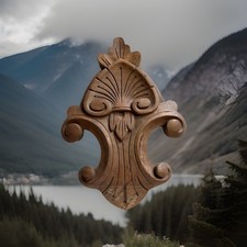 24 French Antique Crest/Pediment/Crown in Solid Oak Wood Highly Carved
