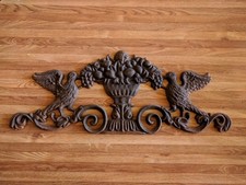 Vintage Cast Iron Wall Pediment Two Birds & Cornucopia 24" x 9.5"