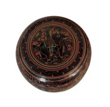 Vintage Burma Laquered Hand Painted Betel Nut Box With Elephant 2 x2”