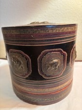Vtg Burmese Lacquered Round Box Container Tea Box Siam Mekkala Gooddess Sea