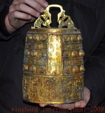 10"China ancient Bronze ware gilt Musical Instruments Chimes Chime Bell