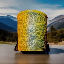 Chinese Pottery Brush Teacup by 献瑞 with Dragon, Great Wall Motif, Yellow Brown