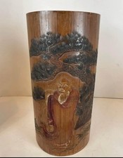 Old Chinese Japanese Carved Bamboo Brush Pot Vase Asia China Japan