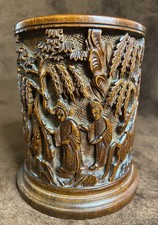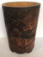 Fine Old Chinese carved landscapes and figurines bamboo brush pot Vase