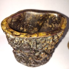 Vintage Chinese Soapstone Ornate Intricate Ink Brush Pot