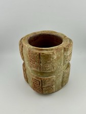 Antique Chinese Brush Pot Terracotta Figural Man pencil vase Signed