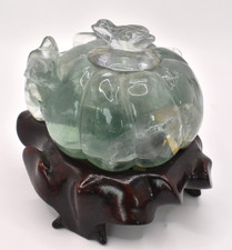 Antique Carved FLUORITE Gem Stone Chinese Gourd Brush Washer Ink Pot Lidded Box
