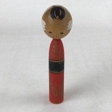 Japanese Wood Kokeshi Doll Vtg Red Black Gold Folk Art Toy Decoration KF679