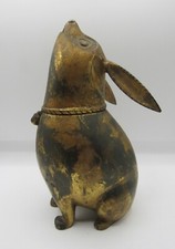 Antique c.1920 Japanese gilt metal moon facing rabbit sculpture 9” Japan