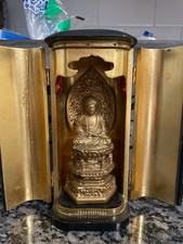 Antique Vintage Portable Shrine Zushi Amida Buddha Buddhist Altar Figure Old