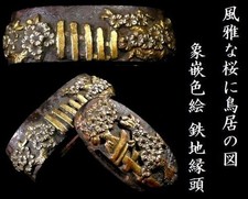 Fuchikashira Japanese Antique Full Bloom Sakura Samurai Katana Sword Fitting JP