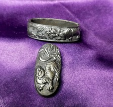 Antique Japanese Menuki Kabuto Samurai Armor Helmet Katana Sword Fitting Old