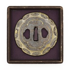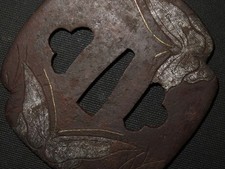 Japan antique Edo era plant clan inlay Tsuba Iron Box sword katana armor blade