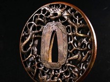 Antique Very Rare Dragon motif Tsuba Edo Era Samurai katana Sword Guard Japan