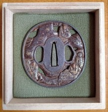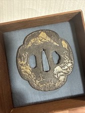 Japan antique Azuchi momoyama era family clans Tsuba Iron Box sword katana