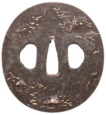 Tsuba Heianjo Inlaid Japanese Antique Sword Fitting Samurai Katana Wakizashi