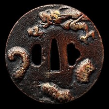 Japanese Antique Sea Cucumber Pattern Tsuba Samurai Katana Sword Guard fromJapan