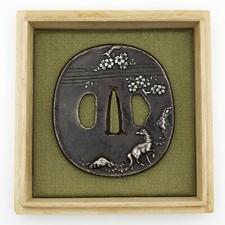 TSUBA SANSUI 鍔 山水 inlay Japanese Antique Sword Fitting Katana Guard With Box