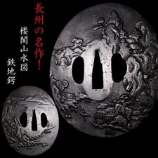 Japanese Antique Landscape Scene Iron Tsuba Samurai Katana Sword Guard fromJapan