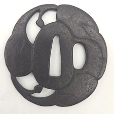 Antique Botanical OpenWork Iron Tsuba Japanese Samurai Katana Sword Guard Japan