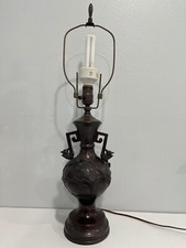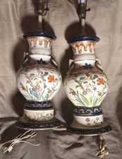 Antique Asian Oriental Lamps Pair of Two 2 Chinese Art Pottery Vases Urns Set
