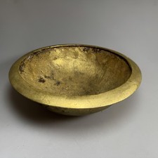 Vtg Brass Bowl Hand Hammered Rounded Bottom Ornate Sunburst Design 9 Inch Heavy