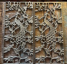 Vintage Pair Of Decorative Metal Lattice Panels With Peacock Motif