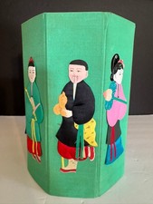 Vtg Chinese Octagonal Collapsible Silk Box- Handmade Silk Immortal Figures