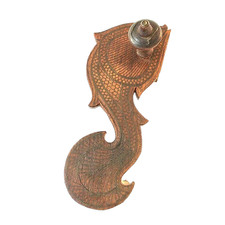 ANTIQUE ASIAN THAI? WOOD CARVED SHOE WALL HOOK DECOR IMBEDDED WIRE DESIGN 9.5" L