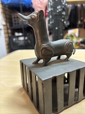 Ancient Antique Cast Bronze Animal Figurine Deer goat Aged Patina - READ