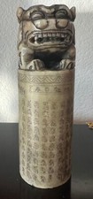 Antique Carved Stone Ink Seal Stamp Chop Dragon 4.5" Tall Round Cylindrical