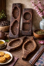 VTG/antique Chinese/Japanese Hand Carved Wooden Mooncake Rice Cake Molds Set 4