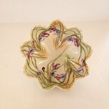 Antique Hand Painted Porcelain Footed Bowl w/ Purple Irises & Gold Gilding