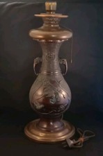 Antique Chinese or Japanese Bronze Vase w/ Birds & Flowers Mounted as Lamp