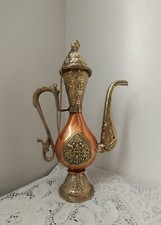 Antique Ornate Handmade Copper & Brass Dragon Motif Coffee / Tea Pot
