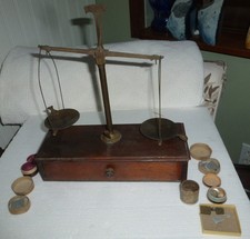 Antique BtassApothecary Balance Scale Weights in Wooden box Lbs