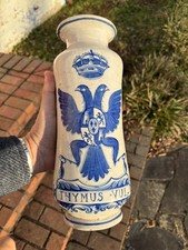 ANTIQUE SPANISH FAIENCE APOTHECARY MEDICINE JAR ALBARELLO, 19th century shield