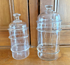 Antique Apothecary Glass Jar Pair c1873 Patent Lid Hand Blown Chemist Drugstore